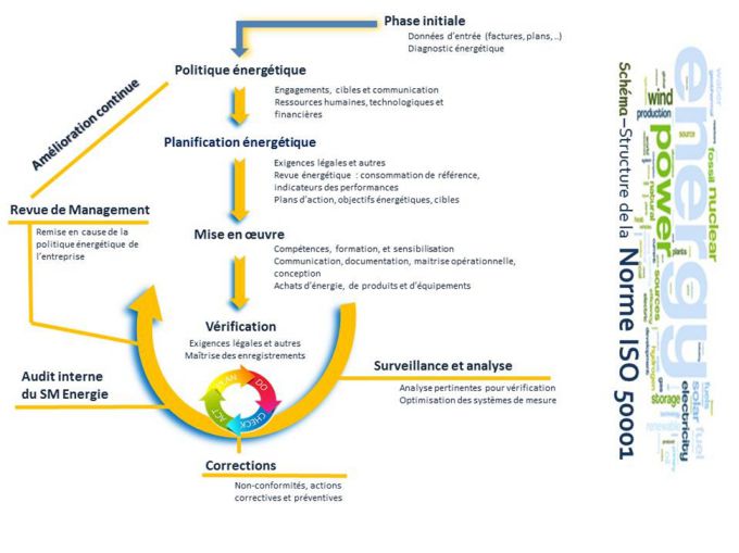 La norme ISO 50001 définit une série d'exigences spécifiques à la mise en place d'un système de management de l’Energie au sein d'une organisation, quels que soient sa taille et son domaine d'activité.